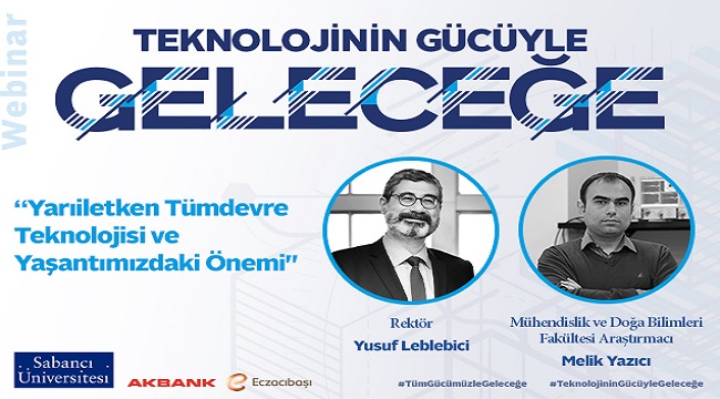 “Teknolojinin Gücüyle Geleceğe” Webinar Serisi’nin yedincisi ve sonuncusu “Yarıiletken Tümdevre Teknolojisi ve Yaşantımızdaki Önemi” başlığı altında gerçekleşti. Webinarda, Sabancı Üniversitesi Rektörü Yusuf Leblebici ve Mühendislik ve Doğa Bilimleri Fakültesi Öğretim Üyesi Melik Yazıcı cep telefonlarından bilgisayarlara, otomotiv elektroniğinden, tıp elektroniğine pek çok alana hizmet eden “Yarıiletken Tümdevre Teknolojisi ve Yaşantımızdaki Önemi”ni günümüzden somut örnekler vererek anlattı.