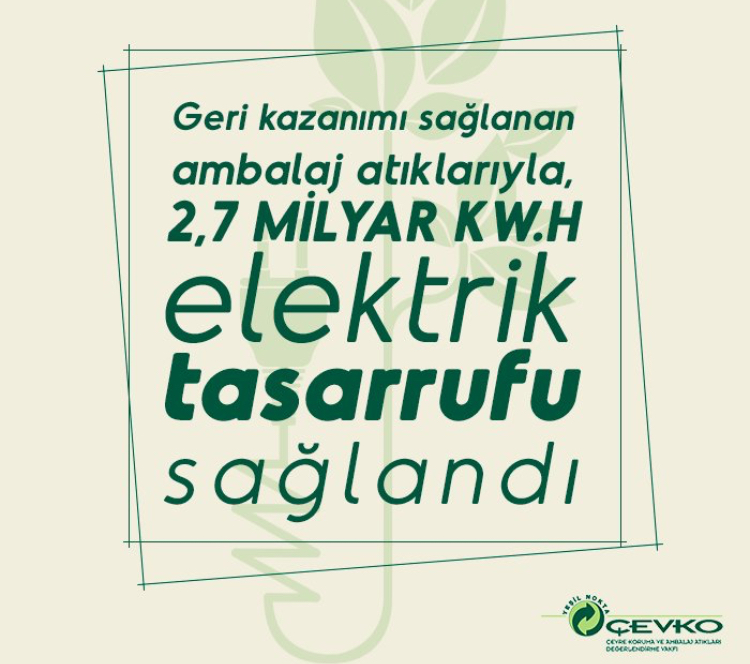 Geri dönüşümün faydaları bir kez daha ortaya çıktı. Sadece 2017 yılında geri kazanımla yılda 2,7 milyar kilowat saat (kwh) elektrik tasarrufu sağlandı. Bu rakam, milyarlarca liraya inşa edilen orta ölçekli bir baraja denk geliyor.