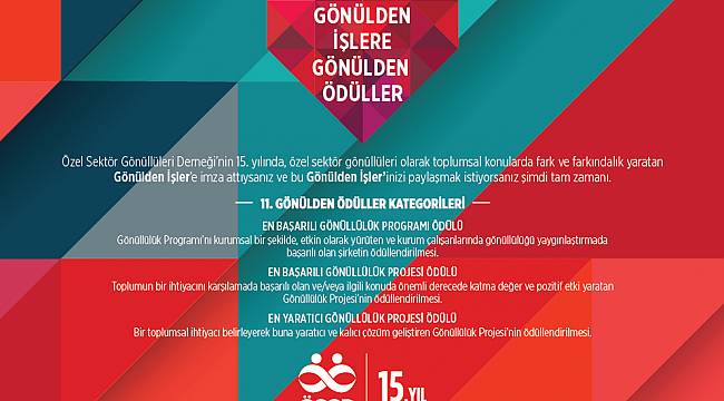 “Gönülden Ödüller” Türkiye’de özel sektör kurumları ve çalışanlarının gönüllülük çalışmalarını destekleyerek yaygınlaşmasını sağlamak ve toplumda fark yaratan iyi örnekleri ödüllendirmek amacıyla 2007 yılından bu yana düzenleniyor.Bu yıl 11’ncisi düzenlenecek ödül töreninde Türkiye’nin önde gelen sektörlerinde faaliyet gösteren firmaların gönüllülük program ve projeleri ödüllendirilecek. Bugüne kadar finans, enerji, teknoloji, ilaç, perakende, otomotiv gibi Türkiye’nin önemli sektörlerinde faaliyet gösteren kuruluşlar, başarılı ve yaratıcı gönüllülük projelerine imza atarak çeşitli kategorilerde ödül sahibi oldular.