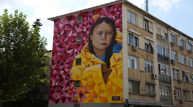 Enerji Ekonomisi - İklim krizine dikkat çekmek için okul boykotu hareketini başlatarak yaşıtları arasında farkındalık oluşturan ve Nobel Barış Ödülüne aday gösterilen 16 yaşındaki İsveçli iklim aktivisti Greta Thunberg’in portresi mural festivali kapsamında Kadıköy'de bir apartmanın duvarına çizildi.