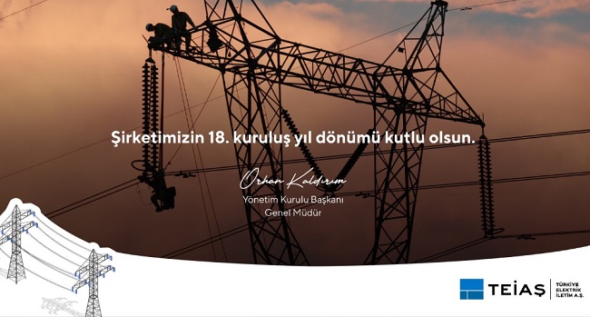 Türkiye Elektrik İletim AŞ (TEİAŞ) Yönetim Kurulu Başkanı ve Genel Müdürü Orhan Kaldırım, kuruluş yıldönümü nedeniyle bir kutlama mesajı yayınladı. Genel Müdür Kaldırım'ın TEİAŞ'ın resmi sosyal medya hesabı üzerinden yayınladığı kutlama mesajı şöyle: Şirketimizin 18. kuruluş yıl dönümü kutlu olsun.