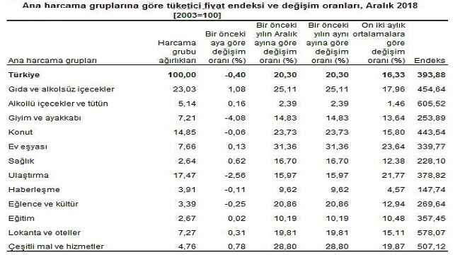 Türkiye İstatistik Kurumu (TÜİK), Aralık 2018enflasyon rakamlarını açıkladı. Yeni açıklanan eflasyon rakamlarına göre 2018 yılında enflasyon içinde yer alan Ulaşım Sektörü'nde yıllık artış 21,77 oldu. Ulaşım enflasyon artışı; aylık, yıllık ve dönemsel bazdaki ayrıntılar için haber fotuyu inceleiniz.