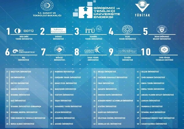 TÜBİTAK öncülüğünde, üniversiteler arasında yenilik ve girişimcilik odaklı rekabeti artırmak için oluşturulan;- 2022 Yılı Girişimci ve Yenilikçi Üniversite Endeksi sonuçları açıklandı!
