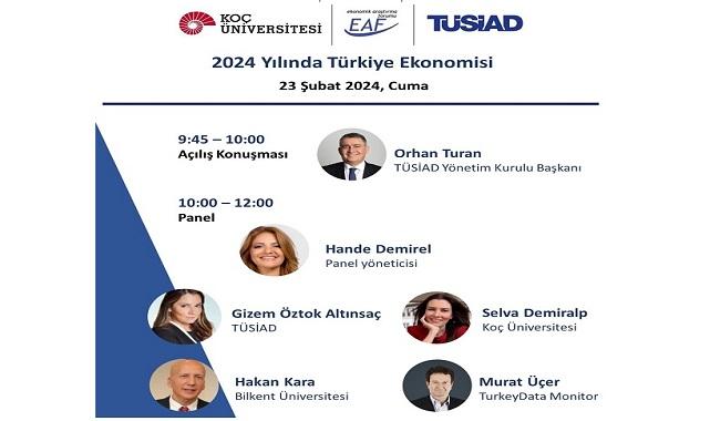 TÜSİAD, bilgi paylaşımı yaptı: ''Koç Üniversitesi–TÜSİAD Ekonomik Araştırma Forumu @eaf_erf 23 Şubat Cuma, 10.00-12.00 arasında “2024 Yılında Türkiye Ekonomisi” başlıklı bir panel düzenliyor.''