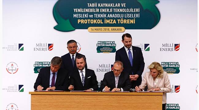 Enerji ve Tabii Kaynaklar Bakanı Berat Albayrak Milli Eğitim Bakanı İsmet Yılmaz'ın da katıldığı, "Milli Enerji Eğitim Hamlesi" kapsamında düzenlenen "Tabii Kaynaklar ve Yenilenebilir Enerji Teknolojileri Mesleki ve Teknik Anadolu Liseleri" protokol imza töreninde konuştu