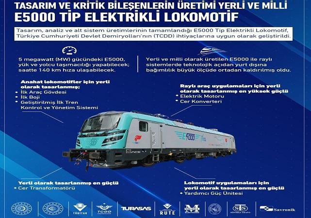 Tasarım ve kritik bileşenlerin üretimi yerli ve milli imkânlarla gerçekleştirilen E5000 Tip Elektrikli Lokomotif raylara indi!