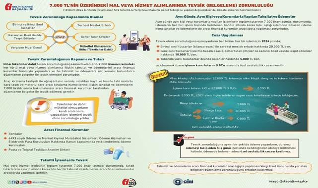 Gelir İdaresi Başkanlığı (GİB), 7.000 TL’nin üzerindeki tahsilat ve ödemelerde tevsik zorunluluğuna açıklık getirdi. İşte GİB'in 7 bin TL üstü ödemeler için açıklayıcı bilgilendirmesi.