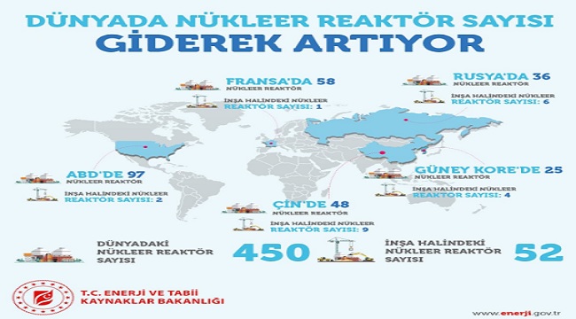 Enerji ve Tabi Kaynaklar Bakanlığı (ETKB), nükleer santrallerle ilgili yeni bir bilgi paylaşımı yaptı. Bakanlık 'Gelişmiş ülkelerin olmazsa olmazı, nükleer enerji' başlıklı bilgi paylaşımında, dünyadaki ve gelişmiş ülkelerdeki nükleer santrallere dikkat çekiyor.