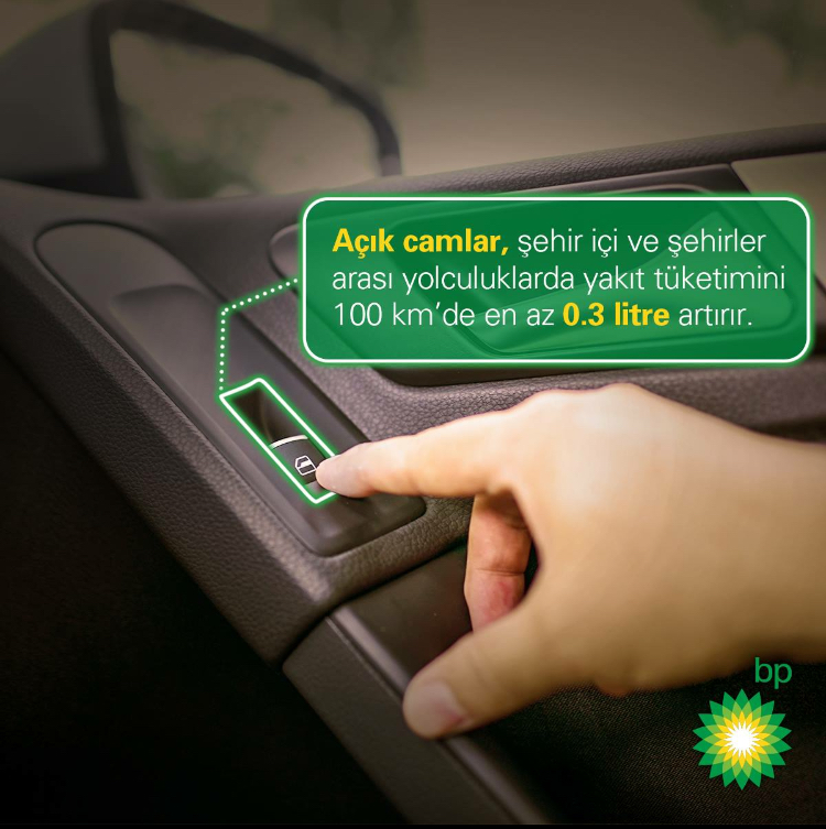 Açık camlar yakıt tüketimini 0,3 litre artırır. Akaryakıt şirketi BP, araç sürücülerine önemli bir hatırlatma yaptı: Şehir içi ve şehir dışı yollarda arabanın açık camları, 109 kilometrede (km) yakıt tüketimini 0,3 litre artırır.