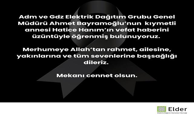 - 'Adm ve Gdz Elektrik Dağıtım Grubu Genel Müdürü Sayın Ahmet Bayramoğlu’nun değerli annesi Hatice Hanım, Hakk’ın rahmetine kavuşmuştur. Merhumeye Allah’tan rahmet, Sayın Bayramoğlu ve ailesine sabır dileriz.''