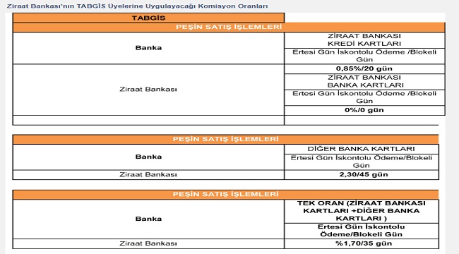 ZİRAAT BANKASI - TAGBİS KOMİSYON ANLAŞMASI