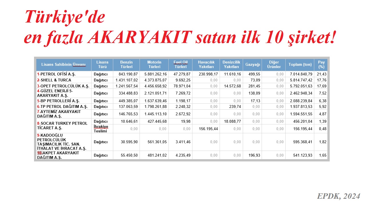 - her yıl düzenli olarak akaryakıt şirketlerinin toplam satışları ve pazar paylarını açıklıyor!