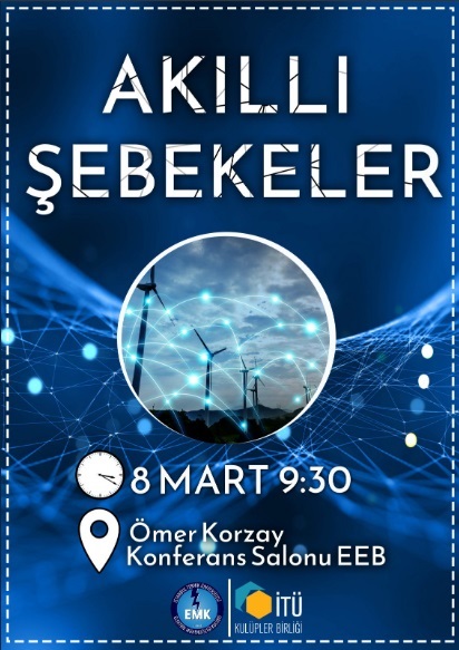 İstanbul Teknik Üniversitesi'nde 'Akıllı Şebekeler' konuşulacak. İTÜ Elektrik Mühendisliği Kulübü'nün konuyla ilgili sosyal medya hesabı üzerinden yaptığı bilgilendirme şöyle: Artan enerji ihtiyacına getirilen en popüler ve önemli çözüm olarak nitelendirilebilecek 'Akıllı Şebeke'leri EEB Ömer Korzay Konferans Salonu'nda mercek altına alacağız. Eğer siz de bu alan hakkında detaylı bilgi sahibi olmak istiyorsanız bize katılın.