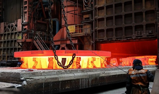 - Reaktör basınç kabı tabanı operasyonu iki aşamalı olarak gerçekleştirildi. Öncelikle boru şeklindeki dövme demir, Atommash’ın ısı ve presleme alanında açıldı. İkinci aşamada, tabana şekil verildi. 64 ton ağırlığında ve 300 mm kalınlığındaki yuvarlak ham parça, üç aşamalı olarak 6 saat boyunca 1020 derece ısıya tabi tutuldu. Ardından levha, bir vinç yardımıyla pres makinesine gönderildi. Reaktör basınç kabının tabanı, gücü 10 bin ton olan pres makinesinde yapılan işlemle oluşturuldu.