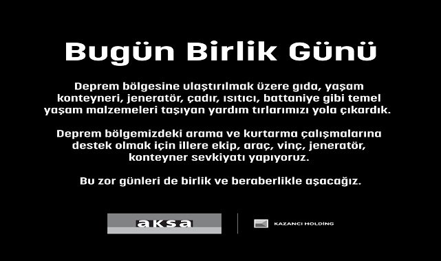 Holdingimiz ve tüm grup şirketlerimiz, başta AFAD olmak üzere tüm kamu kuruluşları ile tam koordinasyon halinde çalışmalarına devam ediyor. Bu zor günleri de birlik ve beraberlikle aşacağız.- Aksa Doğalgaz