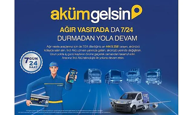 Akümgelsin hizmetinden şimdi ağır vasıta araçları için 7/24 yararlanabilecek sürücüler, çağrı merkezi üzerinden, araçlarına uygun olan aküyü öğrenerek güvenilir IVR ödeme yöntemiyle telefondan satın alabiliyor. 444 5 258 (AKÜ) hattıyla ve www.akumgelsin.com.tr üzerinden kolayca ulaşılan Akümgelsin’den tüm binek, hafif ticari ve ağır vasıta araç sürücüleri yararlanabiliyor. Ayrıca yerinde montaj imkânı sunan Akümgelsin sayesinde hem zamandan tasarruf ediyor hem de İnci Akü teknolojisiyle yoluna güvenle devam edebiliyor.