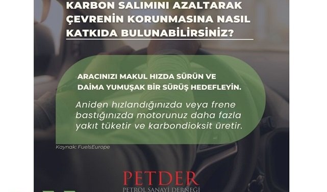 - ''Karbon salımını azaltarak çevrenin korunmasına katkıda bulunmak için aracınızı makul hızda sürün ve daima yumuşak bir sürüş hedefleyin.''
