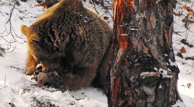 Halk arasında bozayı olarak bilinen kahverengi ayılar uzun yaşayan canlılardır. Tabiatta yaklaşık 20 yıl kadar yaşasalar da kapalı ortamda 35 yıl kadar yaşayabilirler. Ayılar 4-6 yaşında erginliğe ulaşırlar, ancak 5 yaşından önce anne olmaları oldukça zordur. Türkiye’de ayılar genellikle iki yavru yaparlar. Kameralara yansıyan görüntüde olduğu gibi 3 veya 4 yavru yaptıkları da olur ancak bu oldukça nadir görülen bir durumdur. Yavrular Ocak veya Şubat ayında doğarlar. Doğduklarında gözleri kapalı ve çaresizdirler. Anne koruması ve şefkatine oldukça fazla ihtiyaç duyarlar çünkü vahşi tabiatta tek başlarına hayatta kalmaları oldukça güçtür. Yavruların bu çaresizliği annenin mücadelesini daha da anlamlı hale getiriyor.