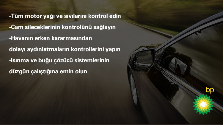 BP’nin bilgilendirmesine göre son bahar için aracın başta motor yağı olmak üzere tüm sıvıların, farların ve ısınma-buğu çözücü sistemlerin kontrol edilmesi gerekiyor.