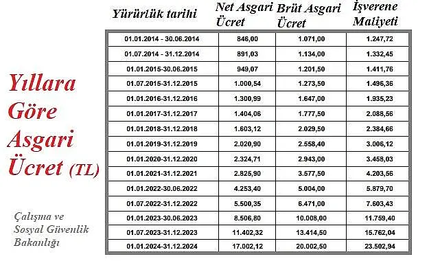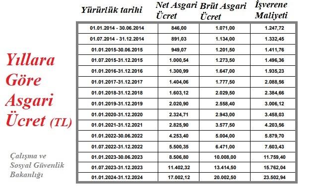 - Asgari ücretin işverene maliyeti