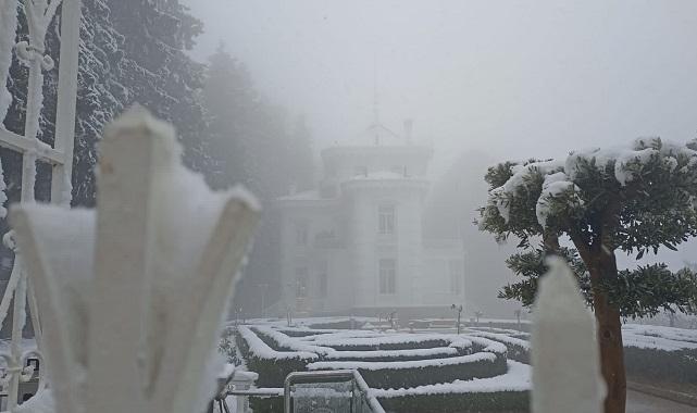 Yeni yıl ile birlikte ülke genelinde başlayan kar yağışı, bir çok ilde devam ediyor. Kar yağışı, güzel görüntüler oluşturdu. Bu güzel görüntülerden birisi de, Trabzon'daki Atatürk Köşkü'nde yaşandı.