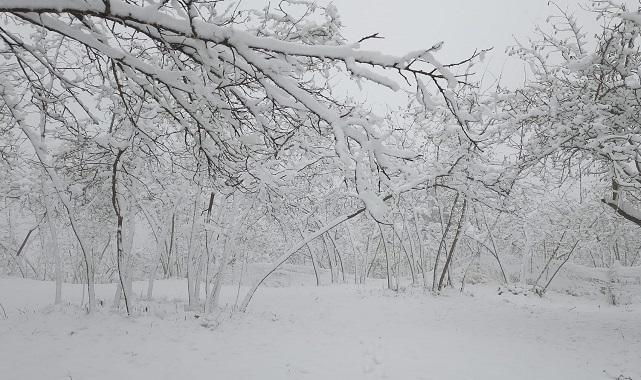 Kar, Köşk'ün etrafındaki fındık bahçelerini de beyaza bürüdü...