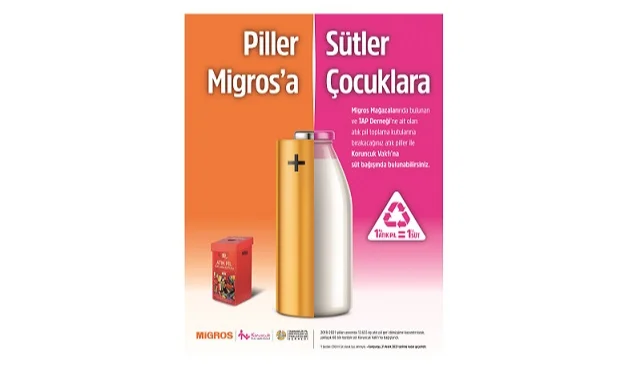 - Migros ve TAP Derneği ile birlikte Koruncuk Vakfı yararına yürütülen “Piller Migros’a, Sütler Çocuklara” kampanyası ile geri dönüşüme kazandırılan yaklaşık 14 ton atık pil, 68 bin bardak süt olarak Koruncuklara geri döndü. 2018’den bu yana devam eden kampanya, çevre duyarlılığını yardımseverlikle bir araya getiriyor. Kampanya ile atık piller güvenli bir şekilde geri dönüştürülürken, her bir pil için Koruncuk Vakfı tarafından desteklenen kız çocuklarına süt bağışı yapılıyor.