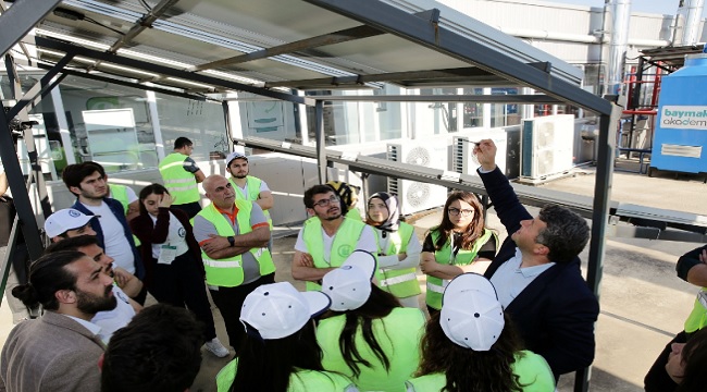 Teorik bilgilerini uygulamada pekiştirebilmeleri amacıyla Tepeören’de bulunan Baymak Akademi’yi ziyaret eden öğrenciler, Akademi’den sorumlu Satış Sonrası Hizmetler Müdür Yardımcısı Mustafa Bozkurt ve Ürün Müdürü Şahin Özkan tarafından hazırlanan sistem uygulamaları, ısı pompası, yoğuşmalı ısıtma sistemleri, fotovoltaik sistemler ve yenilenebilir enerji teknolojilerini içeren sunumlara katıldı. Öğrencilerin her alanda bilgi sahibi olmasını hedefleyen eğitimde Isıtma Grubu Ürün Sorumlusu Emre Koçkan merkezi sistem kazanlar, duvar tipi ve yer yoğuşmalı kazan kaskad sistemler ve brülör ürünleri hakkında, Soğutma Grubu Ürün Müdürü Aytuğ Sönmez klima ve otomasyon sistemleri hakkında, Ürün Grup Müdürü Rıdvan Öksüz üretim özellikleri ve yeni tasarlanan ürünler hakkında detaylı bilgileri öğrencilerle paylaştı. Eğitimin ardından öğrenciler, fabrikanın kombi üretim istasyonlarını ziyaret ederek üretim ve montaj aşamalarını yerinde gözlemledi.