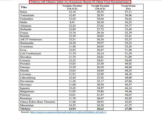 Türkiye ve Avrupa (AB) ülkelerinde benzin fiyatları ve vergiler!