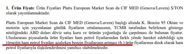 Bilindiği gibi ham petrol fiyatları 70 dolar rakamlarına gerilemesine rağmen benzine zam geldi. Bunun nedeni ise , Türkiye'nin benzin ve motorin (akaryakıt) fiyatları için uyguladığı fiyat formülü. İtalya'daki piyasayı (Geneova) baz alan enerji mevzuatı, ham petrol fiyatlarının aksine ''üarün (benzin, motorin'' fiyatlarnı baz alıyor. Ve akaryakıt fiyatları da, benzin ve motorin talebi belirliyor. Buna göre, bazen ham petrol fiyatları düşse bile, benzin motorine zam gelebilir. Bugünkü benzin zammı da, buna örnek oldu.