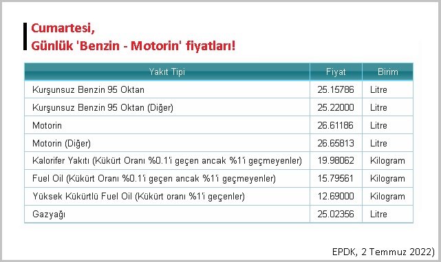 Günlük benzin ve motorin fiyatları...
