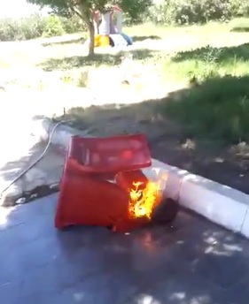Aşağıdaki fotoğrafta, istasyonda çöp sepetine atılan bir sigara izmaritinin neden olduğu yangın görülüyor.