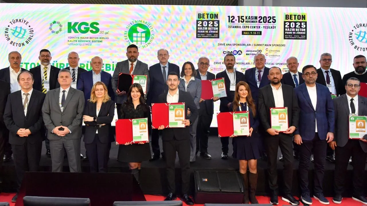 Türkiye Hazır Beton Birliği (THBB) tarafından ülkemize tanıtılan Beton Sürdürülebilirlik Konseyinin (The Concrete Sustainability Council) “Kaynakların Sorumlu Kullanımı Belgelendirme Sistemi” kapsamında belgelendirmeleri devam ediyor. Beton Sürdürülebilirlik Konseyinin (CSC) Belgelendirme Kuruluşu olan KGS İktisadi İşletmesi (KGS) tarafından yapılan denetimler sonucunda son 3 yıl içerisinde CSC Kaynakların Sorumlu Kullanımı belgesini alan 14 firmaya belgelerinin takdimi için bir tören düzenlendi. 13 Kasım 2025 tarihinde BETON 2025 Fuarı ve Zirvesi’nde düzenlenen törene, Türkiye Hazır Beton Birliği Yönetim Kurulu Başkanı Yavuz Işık, Beton Sürdürülebilirlik Konseyi Koordinatörü ve Sürdürülebilirlik Müdürü Cynthia Imesch, THBB Yönetim ve Denetim Kurulu üyeleri, THBB Genel Sekreteri Reşat Sönmez, THBB Teknik ve Sürdürülebilirlik Direktörü Koray Saçlıtüre, KGS Müdürü Çağlar Şaşmaz ve sektör temsilcileri katıldı.