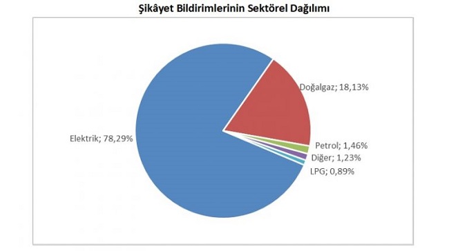 Yeni yayınlanan Enerji Piyasası Düzenleme Kurumu (EPDK) 2019 Yılı Kurum Faaliyet Raporu’nda yer alan bilgilere göre Tüketici Şikayetlerinde elektrik sektörü ilk sırada. Elektriği ikinci sırada doğal gaz, üçüncü sırada petrol ve dördüncü sırada da LPG sektörleri izledi. Tüketici TV'nin haberine göre toplam şikayetlerde elektriğin payı yüzde 78,29. İkinci sıradaki doğal gaz sektörünün oranı yüzde 18,13 ve üçüncü sıradaki petrol sektörünün payı yüzde 1,46. Tüketici şikayetlerinde elektrik ve doğal gaz sektörleri açık ara önde bulunuyor.