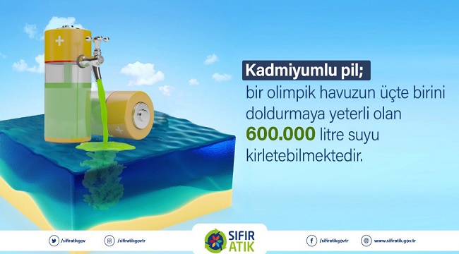 Sıfır Atık: Kadmiyumlu pil; bir olimpik havuzun üçte birini doldurmaya yeterli olan 600 bin litre suyu kirletebilmektedir. Bu da yaklaşık 11 kişinin bir yıllık su ihtiyacına karşılık gelmektedir.