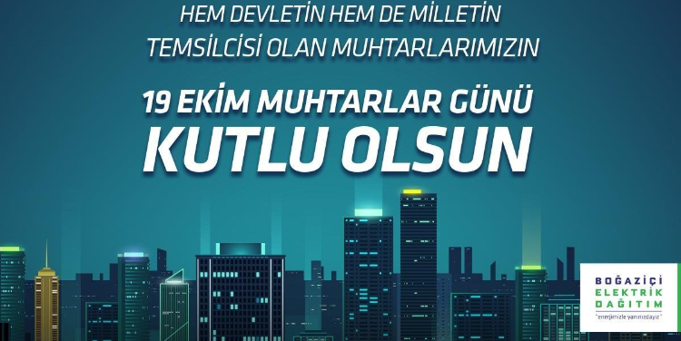 Boğaziçi Elektrik Dağıtım’ın Muhtarlar Günü mesajı şöyle: Enerjimizle her an yanlarında olduğumuz değerli muhtarlarımızın 19 Ekim Muhtarlar Günü kutlu olsun.