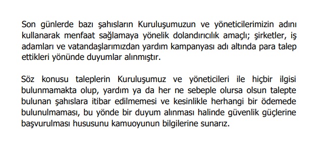 Kamu şirketi BOTAŞ (Boru Hatları ile Petrol Taşıma AŞ), 'son günlerde bazı şahısların kuruluşumuzun ve yöneticilerimizin adını kullanarak dolandırıcılık yaptığı' konulu yeni duyuru yaptı.