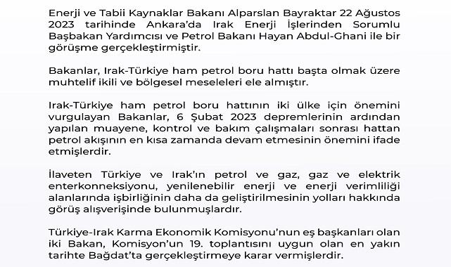 Enerji Bakanlığı - BOTAŞ 'Irak - Türkiye petrol boru hattı' konulu ortak basın açıklamsı tam metni...