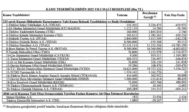 - Kamu İktisadi Teşebbüsleri ve Bağlı Ortaklıklarının 2022 Yılına Ait Genel Yatırım ve Finansman Programı' için haberin sonundaki foto üstüne tıklayabilirisniz.