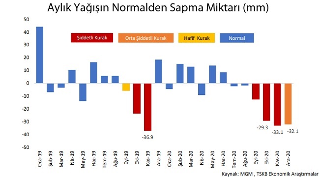 2020 Yılı Aylara Göre Kuraklık Durumu