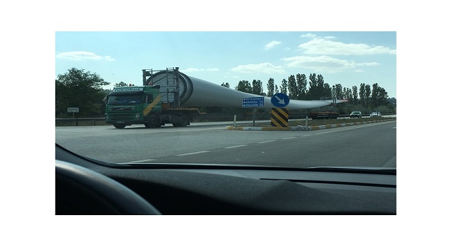 Evet, karşınıza çıkan bu görüntü Rüzgar Enerjisi Santrali (RES) kanatlarıdır. Uzunluğu 10 metreden 50 metreye kadar uzanan (Bazı bölgelerde daha da uzun) bu kanat - pervanelerin ve nakliyesi oldukça zor. Hele hele, otobandan çıkıp dağların tepelerine çıkarılmaları, çok daha zor. Ama dağların tepelerine çıkıp montajı yapıldıktan sonra ise, esen rüzgarla birlikte dönmeye başlar, bu kanatlar. Ve tabi, elektrik üretirler.