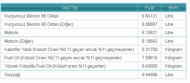 Benzinin litresi 8,64 TL - Motorinin Litresi 8,15 TL