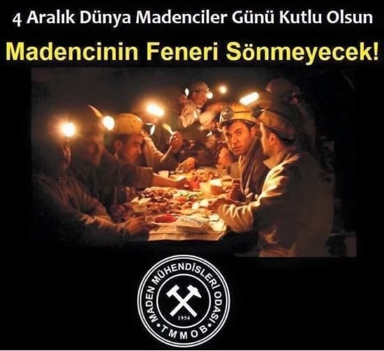 4 Aralık Dünya Madenciler Günü'nü kutluyoruz.