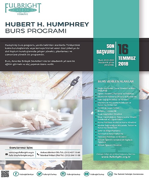 Maden Tetkik ve Arama Genel Müdürlüğü (MTA) duyurusuna göre; 2019-2020 akademik yılına yönelik yapılacak Hubert H. Humphrey Burs Programı başvuruları için son başvuru tarihi 16 Temmuz 2018. Bu burs programına başvurmayı düşünen kişiler başvuru formu ve ayrıntılı bilgiye www.fulbright.org.tr adresinden ulaşabiliyor.