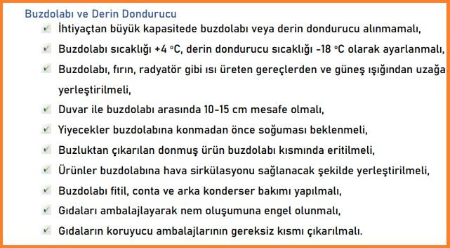 - Bunun için yapmanız gereken basit test: Bir kağıt parçasını, yarısı buzdolabının içine yarısı dışına olacak şekilde kapı arasına yerleştirip dolabın kapağını kapatın. Ve, kağıtı çekmeye çalışın. Kağıt kolayca elinize geliyorsa kapı fitilleri-contaları gevşemiş ya da bozulmuş demektir. Bu durumda 'Buzdolabı için gerekli bakımları yaptırarak daha az elektrik tüketimini sağlamış olursunuz.