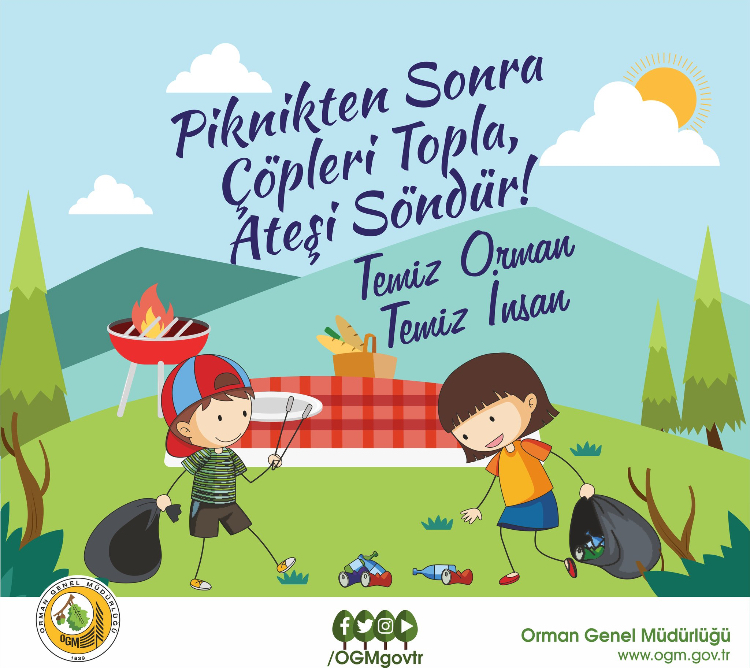Yaz ve tatil, piknikler arttı. Çevre için Orman Genel Müdürlüğü (OGM) çok önemli bir hatırlatma yaptı. İşte o hatırlatma: Piknikten Sonra, Yakmış Olduğunuz Ateşi Söndürün ve Çöplerinizi Toplayın. Temiz Orman, Temiz Çevre, Temiz İnsan.