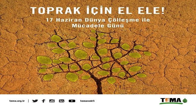 TEMA Vakfı, 17 Haziran Dünya Çölleşme İle Mücadele Günü’nün 25. yılı kutlamaları kapsamında Ankara’da çeşitli etkinlikler gerçekleştirdi. Her yıl farklı bir ülkenin ev sahipliğinde yapılan 17 Haziran Dünya Çölleşme İle Mücadele Günü etkinlikleri bu yıl “Toprağımız için El Ele” temasıyla Türkiye’de düzenlendi. Tarım ve Orman Bakanlığı Çölleşme ve Erozyonla Mücadele (ÇEM) Genel Müdürlüğü’nün koordinasyonunda hayata geçirilen etkinlikler kapsamında TEMA Vakfı, Çocuklar için Toprak ve İklim Atölyesi ve STK Forumu olmak üzere iki ayrı forumun düzenlenmesini üstlendi.