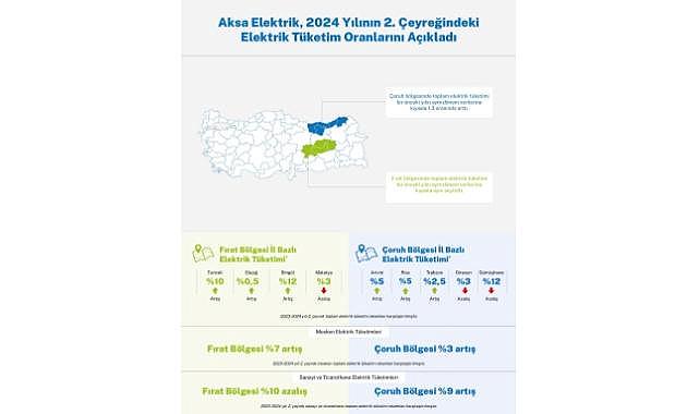 2024 yılının ikinci çeyreğinde, bir önceki yılın aynı dönemine kıyasla Fırat bölgesindeki meskenlerde toplam elektrik tüketiminde yüzde 7 oranında artış görülürken, Çoruh bölgesinde ise bu artış oranının yaklaşık yüzde 3 olduğu gözlendi. Sanayi ve ticarethane grubunda ise Çoruh bölgesinde yüzde 9’luk bir artış gerçekleşirken Fırat bölgesinde yüzde 10 azalış kaydedildi.
