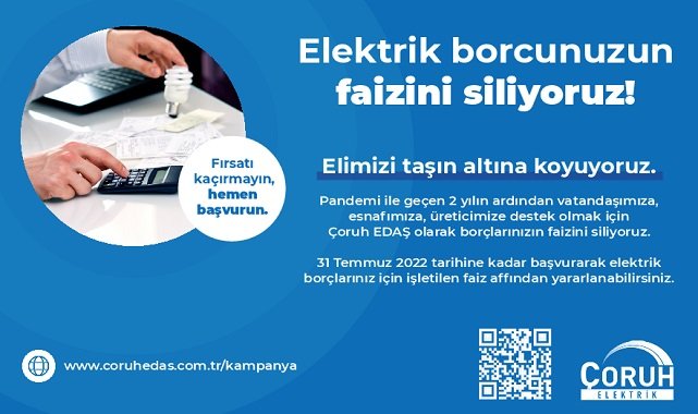 Kampanyadan yararlanmak isteyen abonelerin, icra ve dava aşamasındaki elektrik faturası borçları içi 31 Temmuz 2022 tarihine kadar Çoruh EDAŞ İlçe Yöneticilikleri ile İl Müdürlüklerine başvuruda bulunmaları gerekiyor.