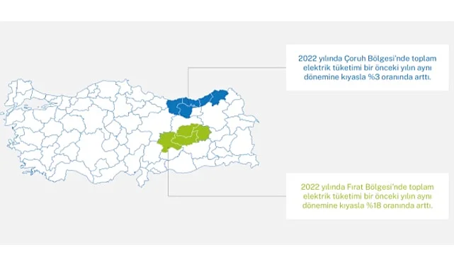 2022 yılının son çeyreğinde bir önceki yılın aynı dönemine kıyasla Çoruh bölgesindeki meskenlerde toplam elektrik tüketimi yaklaşık yüzde 4 oranında azalırken, Fırat bölgesinde ise bu oranda yaklaşık yüzde 5 artış olduğu gözlendi.